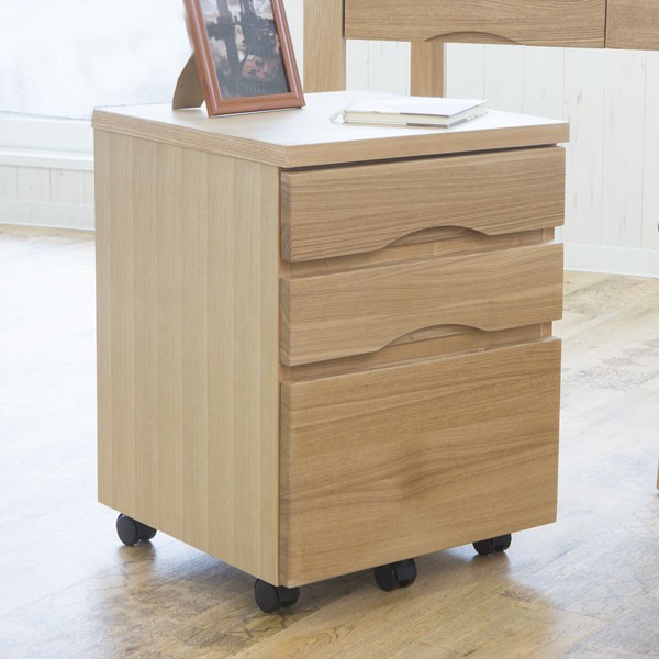 天然木 タモ 突板 オープンワゴン 収納ワゴン 幅42 木目調 キャスター付き 3段 引き出し 木製 おしゃれ 勉強 在宅勤務 テレワーク 北欧 代引不可