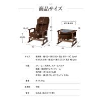 座面の高さは2段階に調節できるのでテーブルの高さ等に合わせてご使用いただけます。また、使わない時はコンパクトに折りたたんで収納できます。