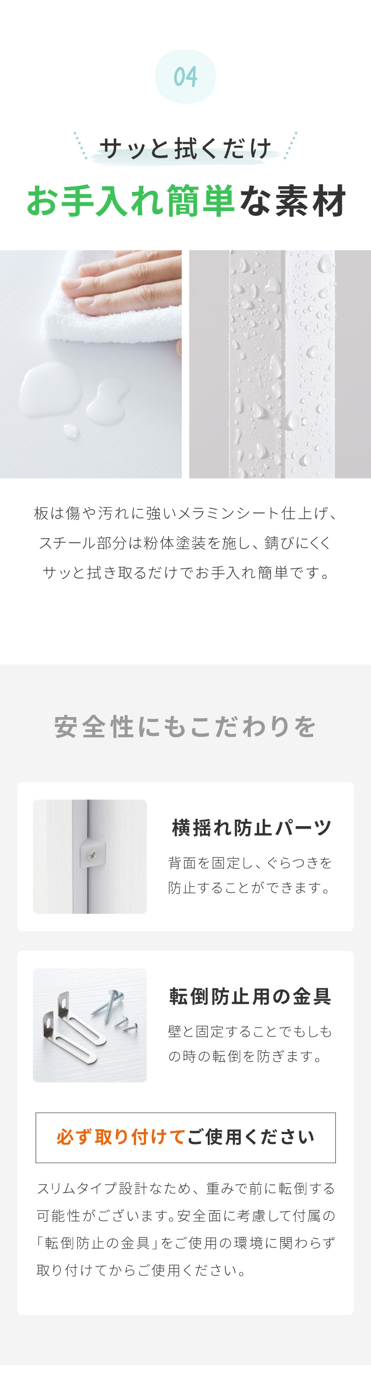 材質 スチール(粉体塗装)、パーティクルボード(メラミン貼り)