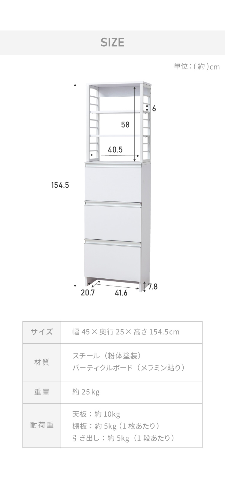 商品サイズ 幅45 × 奥行25 × 高さ154.5 cm