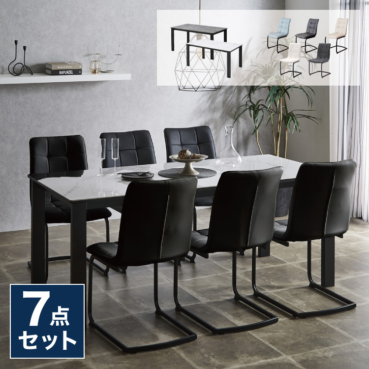 セラミック ダイニングセット 6人掛け 7点セット ダイニングテーブルセット 幅180 合皮 デザインチェア 鏡面 ダイニングチェア 耐水 耐熱 大理石調 代引不可