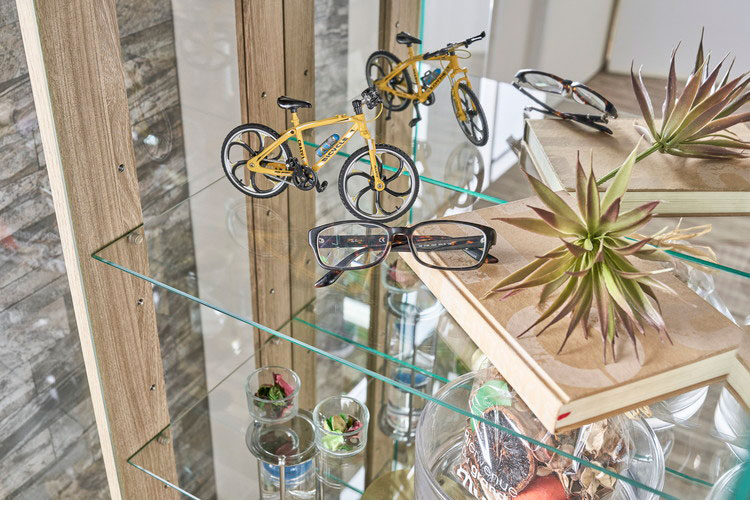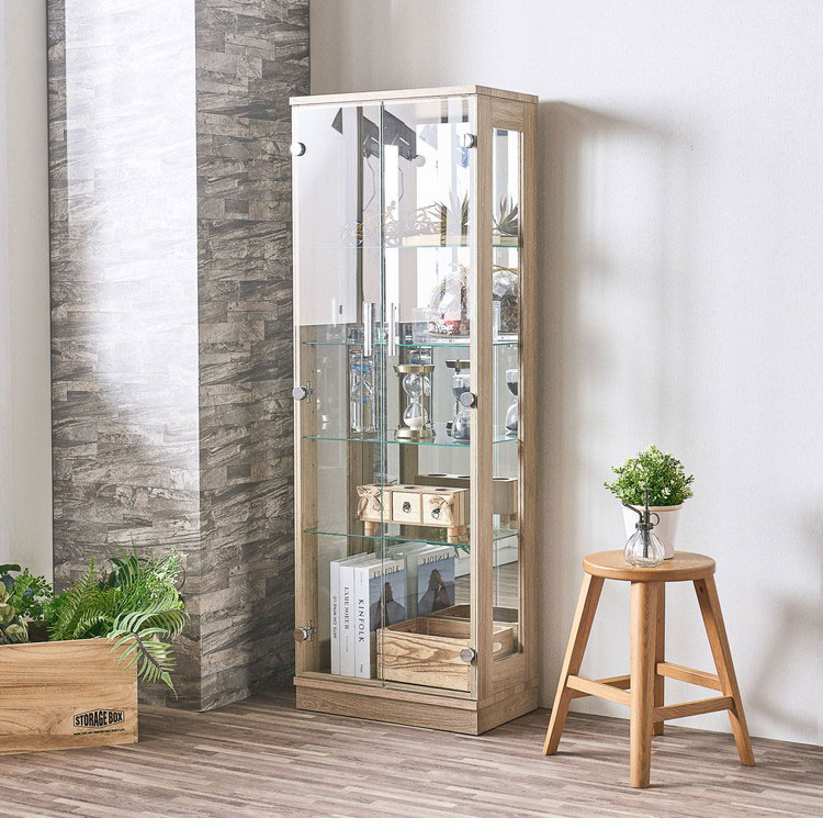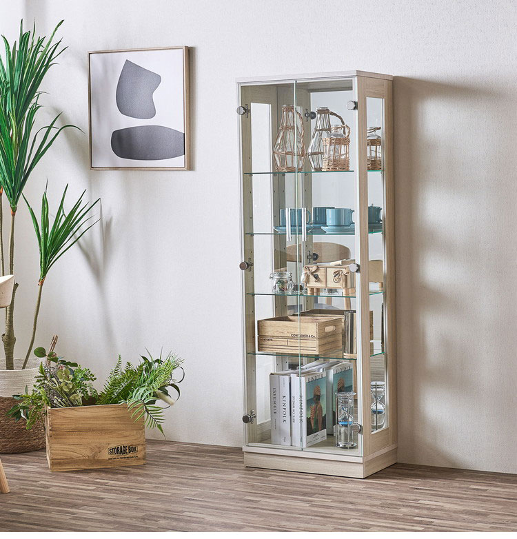 大切なコレクションを美しく。背面ミラー&木目調が際立つコレクションボード〈ノエル50〉