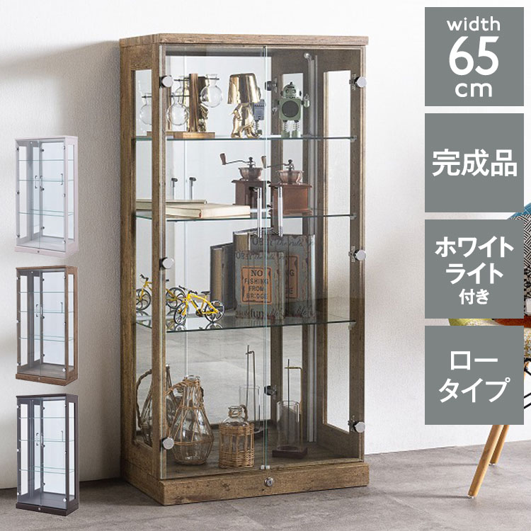 オリーブ65ロータイプ コレクションラック 縦型ホワイトライト付タイプ 完成品 幅64cm 高さ129cm 奥行33cm フィギュア コレクションケース 代引不可