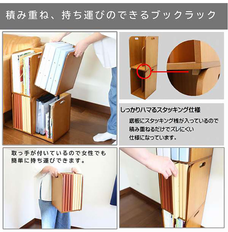 スタッキングできるブックラック スタッキング 積み重ね 重ねられる 本棚 本立て 書類 ファイル マガジンラック 木製 卓上 省スペース コンパクト 代引不可