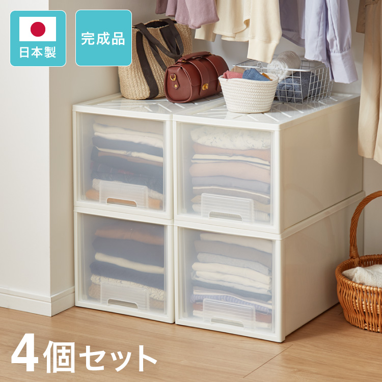 日本製 収納 ケース 深型4個セット 奥行60cm 幅36cm 高さ32.5cm クローゼット 引き出し 衣類 衣装 押し入れ 代引不可 レビュー報告で炭八スマート小袋