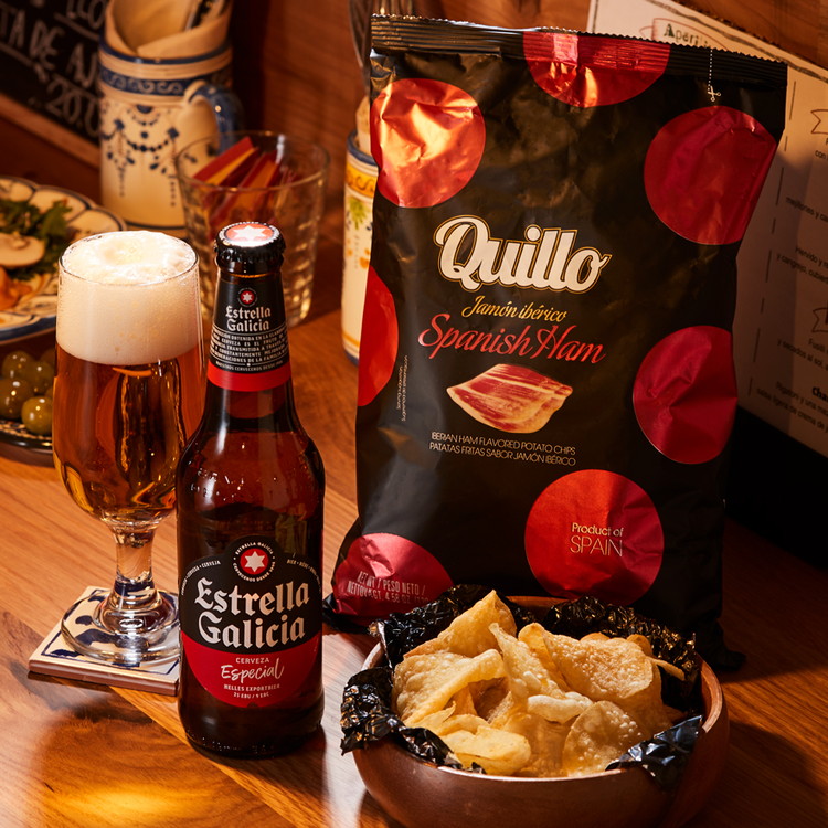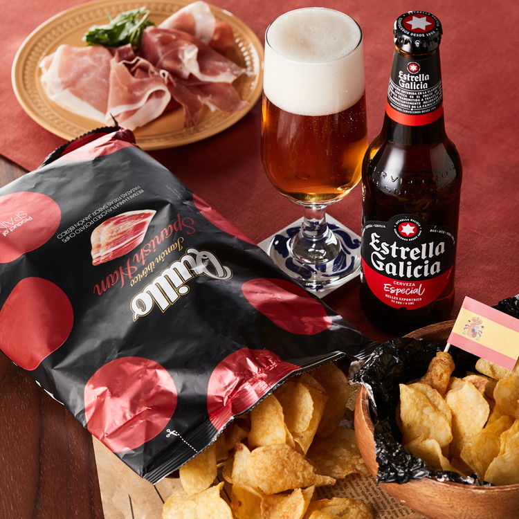 スペインビールの代名詞ラガー&スパニッシュハムポテチ ラッピング済 ギフト エストレージャ・ガリシア Estrella Galicia スペイン ビール ラガー