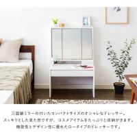 ドレッサー デスク ロータイプ 三面鏡 収納 引き出し 2口 コンセント 幅60 高さ90 ミラー 3面鏡 鏡台 メイク台 化粧台 おしゃれ