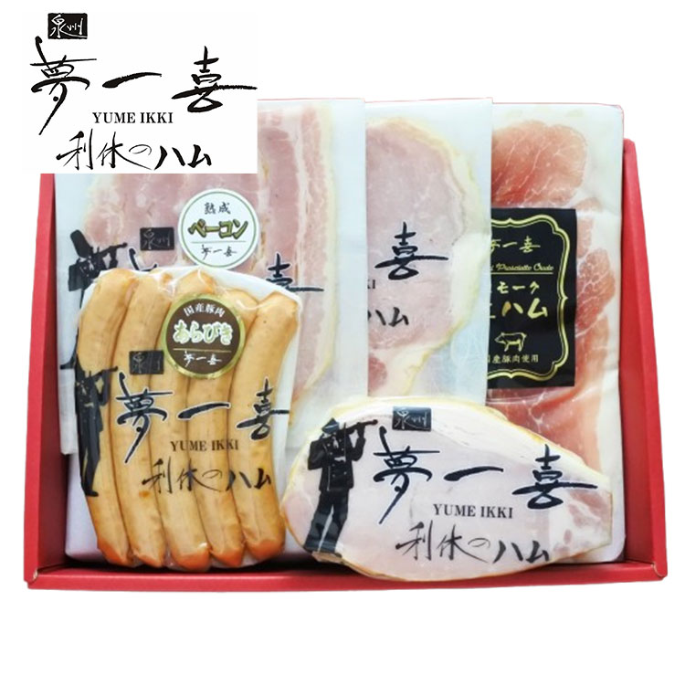 大阪 「夢一喜」 熟成ハム ウインナー 詰合せ 5個 ハム ベーコン ウィンナー 生ハム ギフト 産直 ご当地グルメ 熨斗 代引不可