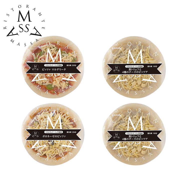 黒トリュフと4種のチーズのピッツァ×2枚、ボロネーゼのピッツァ、ピッツァ マルゲリータ×各1枚 (計4枚、各8インチ(約20cm))