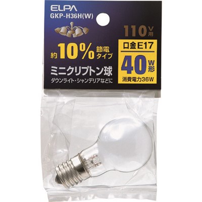 ELPA ミニクリプトン球 GKPH36HW 工事・照明用品 作業灯・照明用品 電球 代引不可