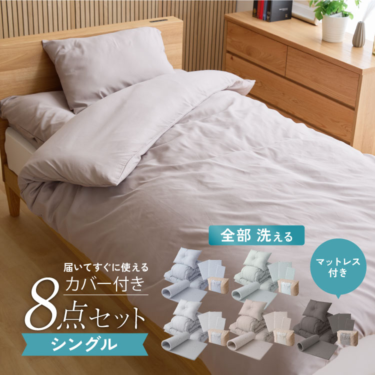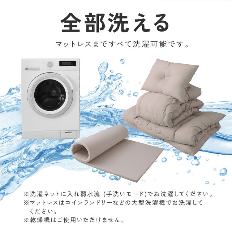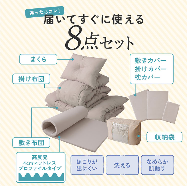 全部洗える 布団8点セット シングル 洗える高反発マットレス付き 厚さ4cm ほこりが出にくい 布団セット プロファイルウレタン 収納袋 洗える