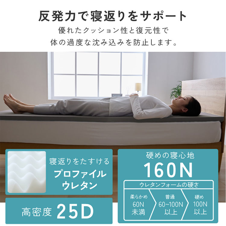 本体:ウレタンフォーム【プロファイル3〜4cm(25D高反発160N)※洗えるウレタンN】