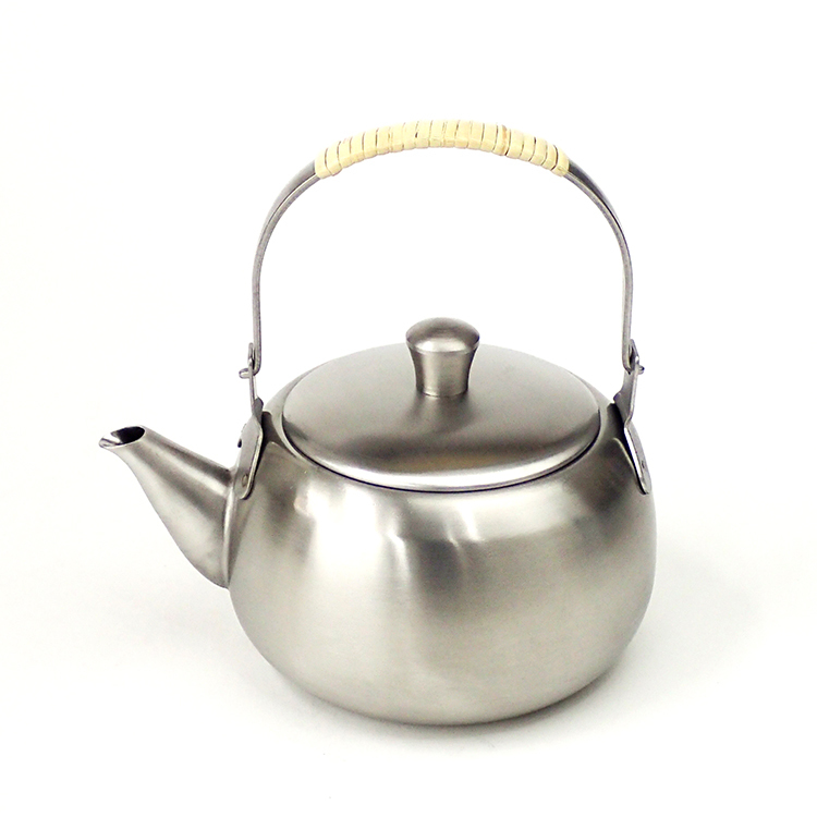 18-8ステンレス製で丈夫で長持ち、汚れが溜りにくく衛生的に使えます。持ち手の部分に藤巻きを施して雰囲気のある急須に仕上げました。