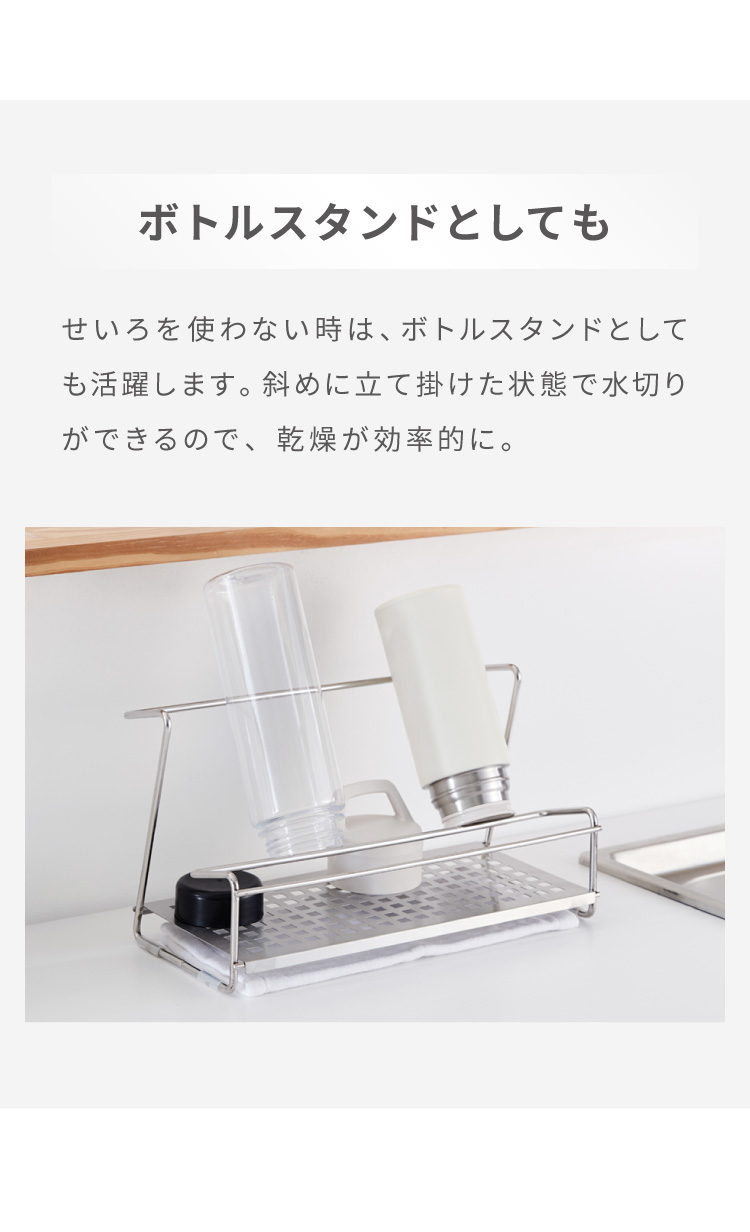 せいろが干せる ヨシカワ 日本製 燕三条 飾れるせいろスタンド 受け皿付き ボトルスタンド 水切りラック ラック せいろ干し ボトル キャップ フタ