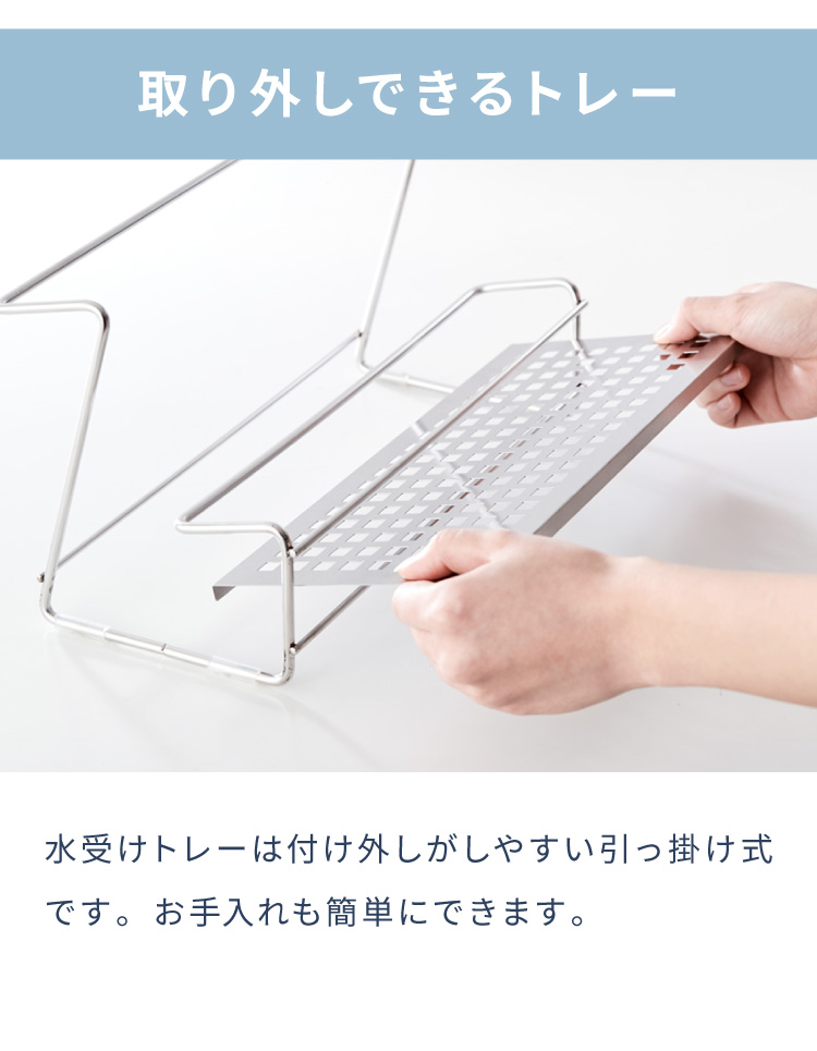 スタンドに置くだけで、風通しがよくなり、効率よく乾燥させることができ、清潔に保てます。