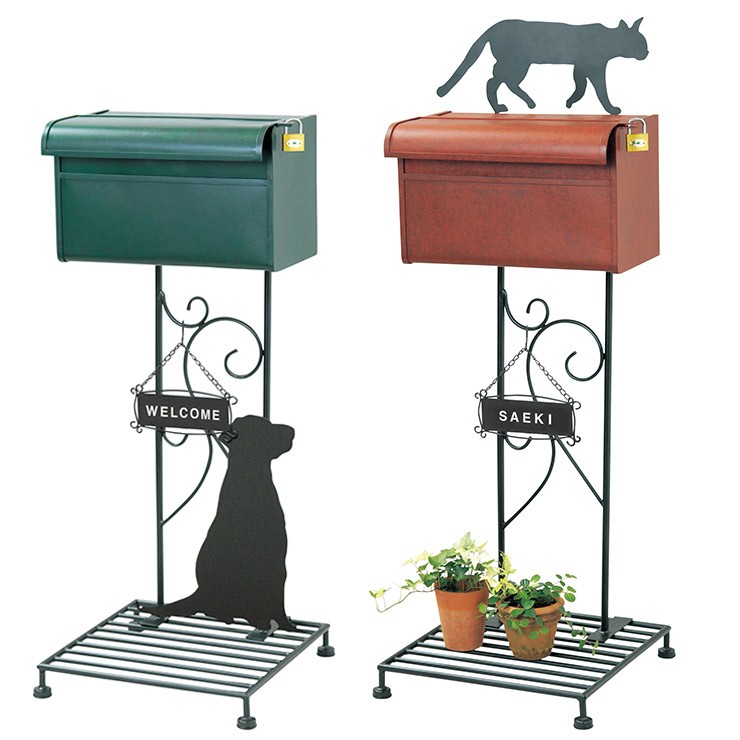 ポスト ドック キャット スタンドタイプ 置き型 鍵付き 郵便受け ポスト スタンド 表札用シール付き 南京錠付き 工事不要 組立式 代引不可