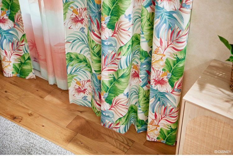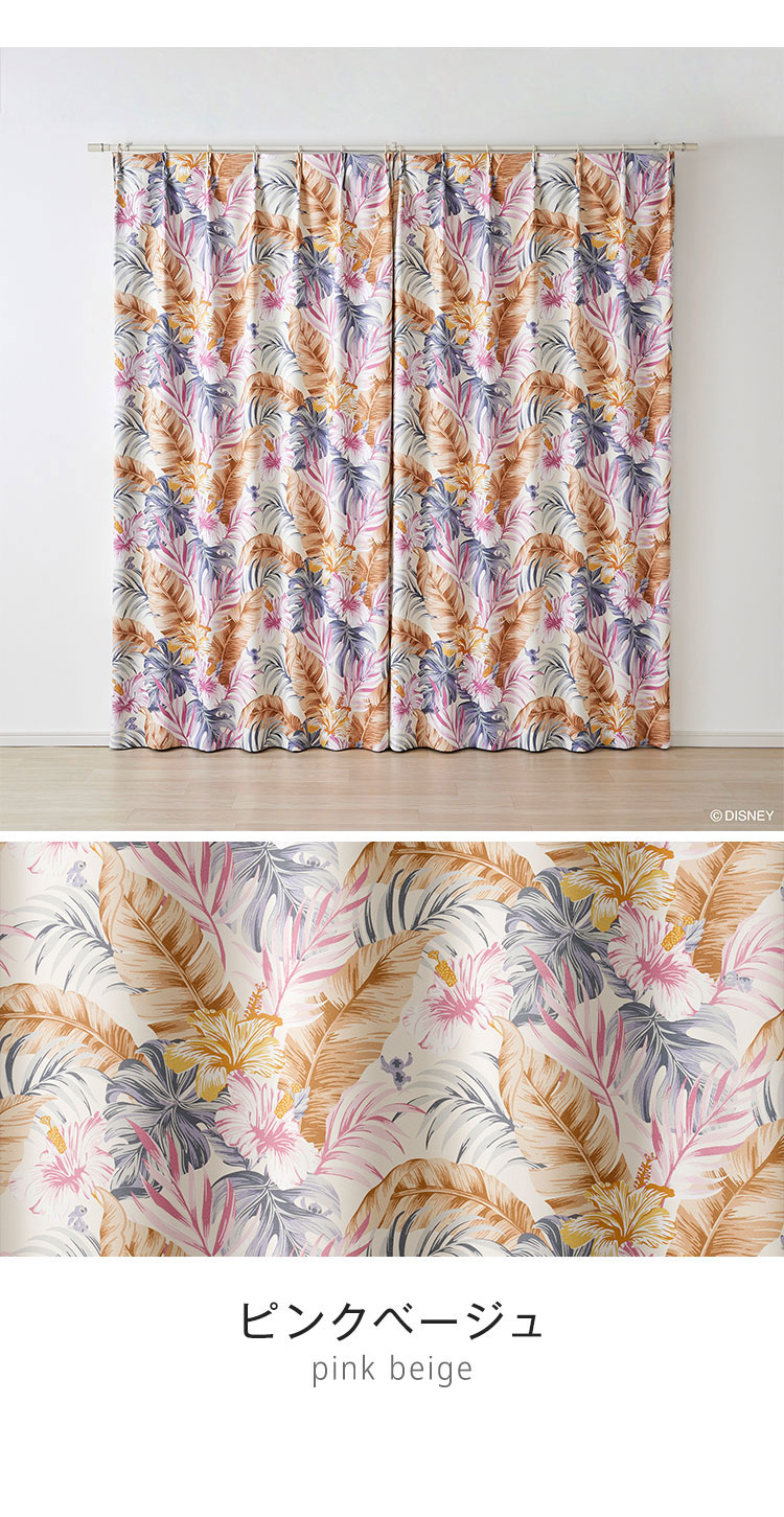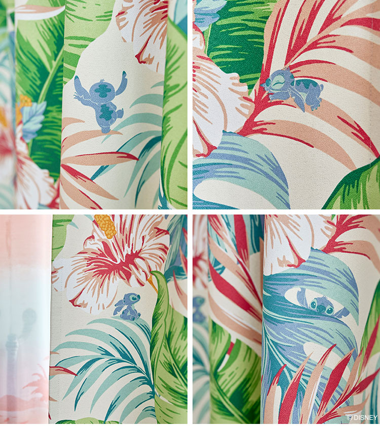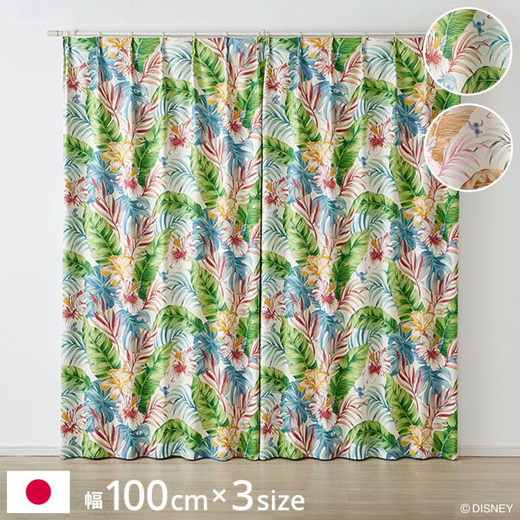ディズニー カーテン スティッチ Disney 形状記憶 2級遮光 日本製 アロハボタニカ 南国 ハワイ 遮光カーテン ドレープ 代引不可