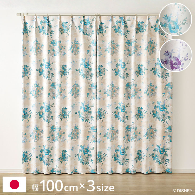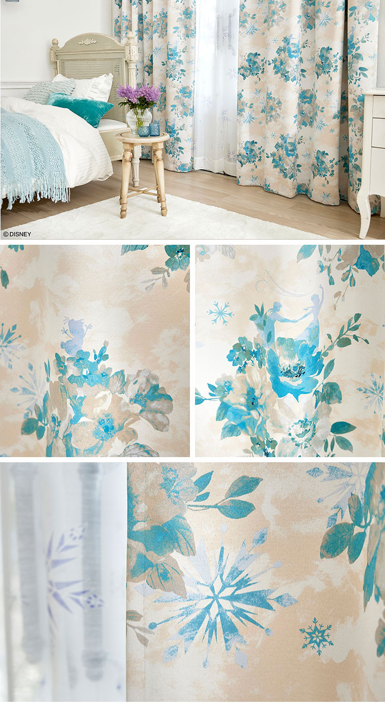 ディズニー カーテン アナ雪 Frozen Disney 形状記憶 2級遮光 日本製 厚地 アイスブルーム 遮光カーテン ドレープ 代引不可