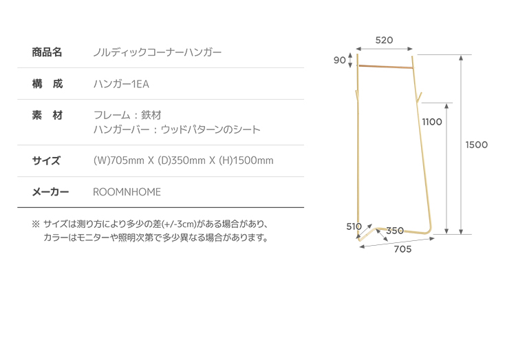roomnhome ハンガーラック ノルディックコーナー ハンガースタンド スタンドハンガー コート掛け 洋服かけ 洋服ハンガーラック 衣類収納 代引不可