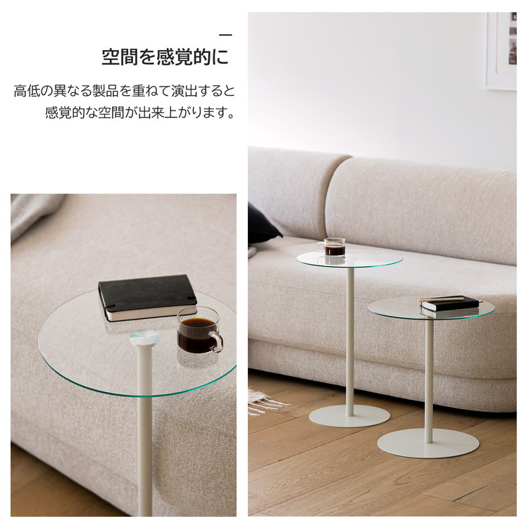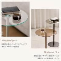 rooomnhome ガラス サイドテーブル 幅30cm ハイタイプ 丸形 アンドラウンドガラステーブル ダイニング ガラステーブル 韓国インテリア コンパクト
