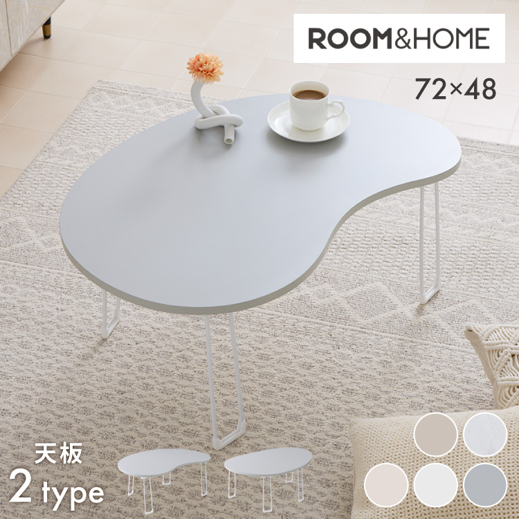roomnhome×リコメン堂 テーブル 折りたたみ ビーンズテーブル 折れ脚 軽い 70cm幅 楕円 代引不可