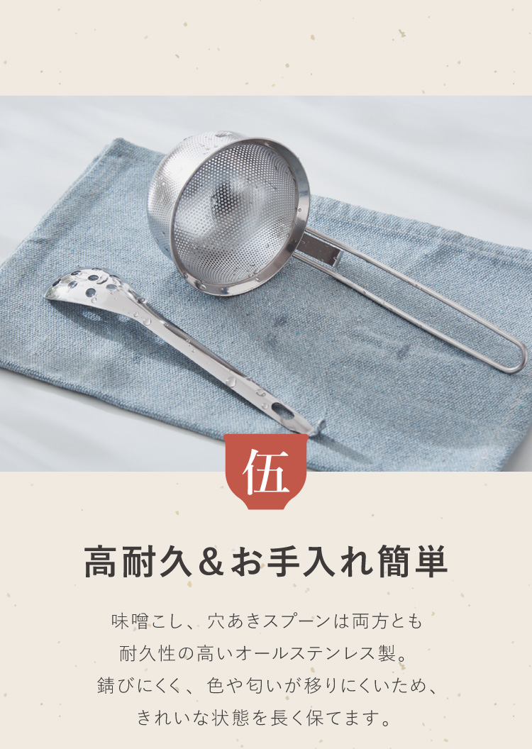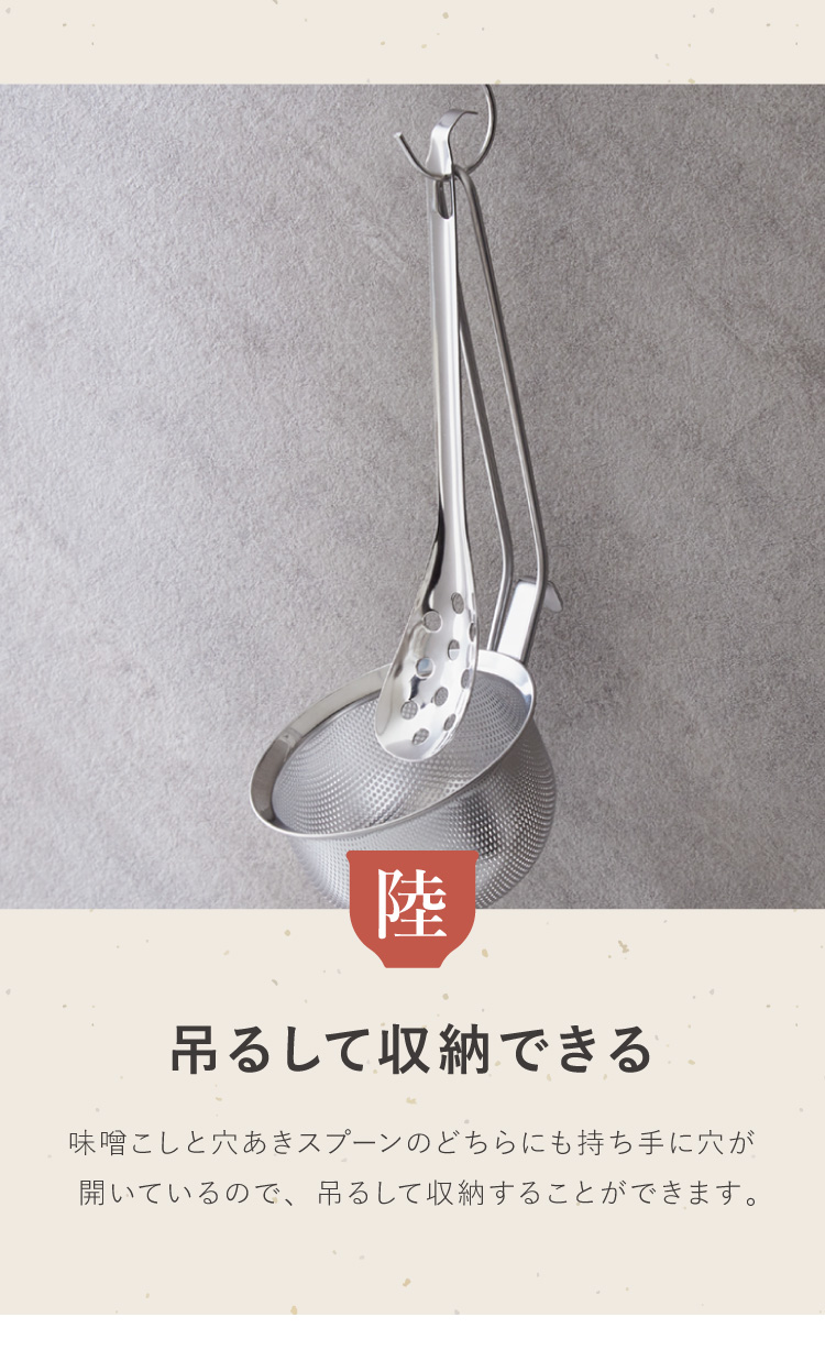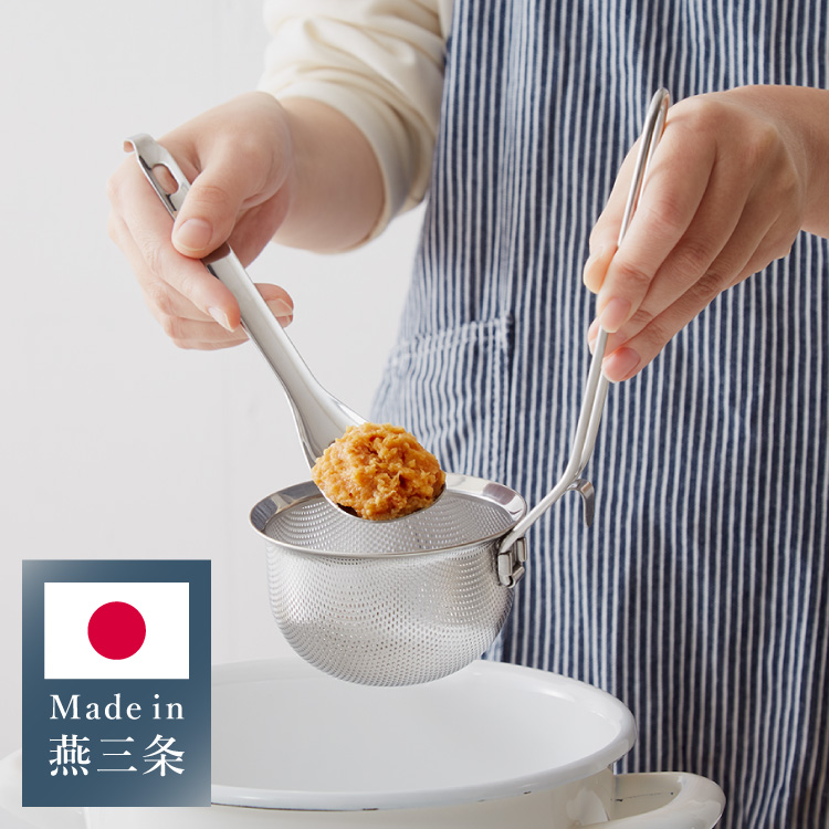 日本製 燕三条 パンチングみそこし 穴あきスプーン付き 目詰まりしにくい パンチング ステンレス製 味噌こし 味噌漉し こし器 味噌汁 R&M RアンドM 代引不可