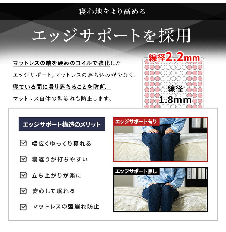 トリプルエッジサポート付き 厚み20cm マットレス ポケットコイルマットレス シングル ニット生地ベッドマットレス ベッドマット 寝具 布団 体圧分散