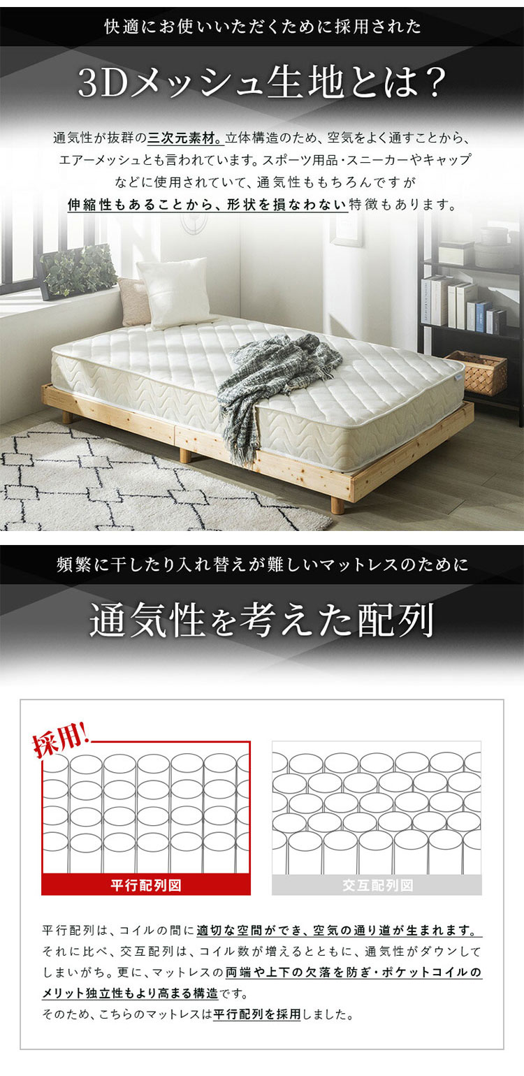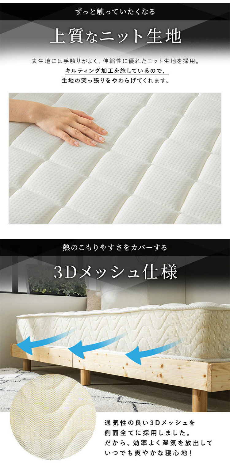 トリプルエッジサポート付き 厚み20cm マットレス ポケットコイルマットレス セミシングル ニット生地ベッドマットレス ベッドマット 寝具 布団