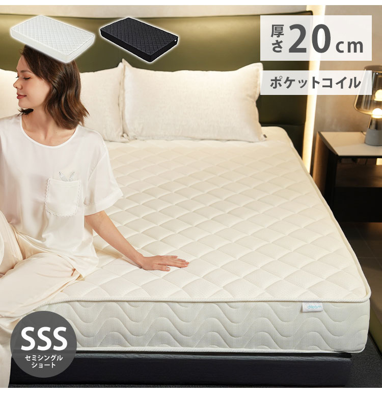 トリプルエッジサポート付き 厚み20cm マットレス ポケットコイルマットレス セミシングルショート ニット生地ベッドマットレス ベッドマット 寝具