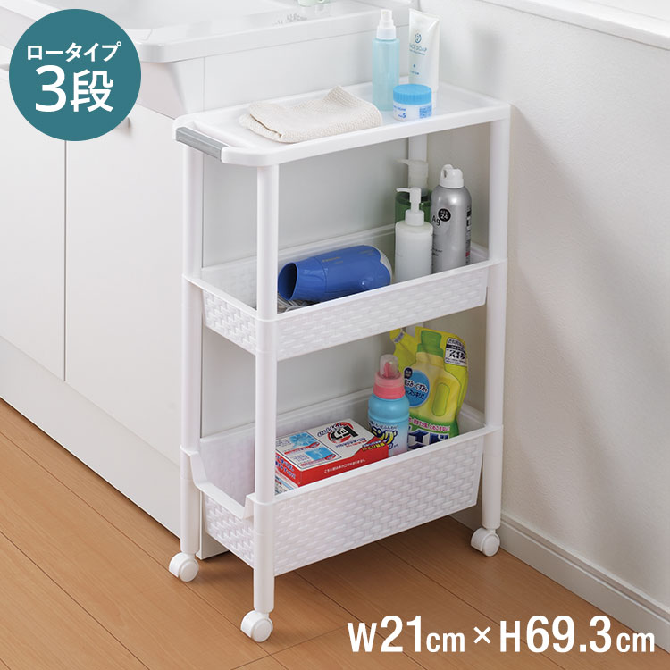 幅21cm 隙間収納 スリムワゴンラック3段 TL-08 キッチン 倉庫 ランドリー 洗面 洗面所 すき間 収納 移動 キャスター付 コロ バスケット 白 軽量 代引不可
