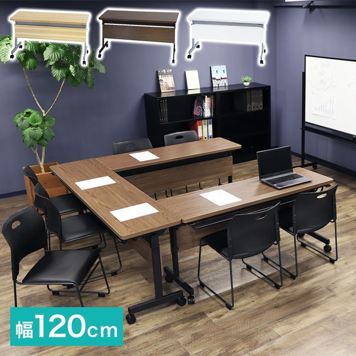 ※法人様限定販売 棚・幕板付き フォールディングテーブル 幅120×奥行き45cm 折りたたみ収納可能 会議用テーブル スタッキングテーブル 棚付き 代引不可