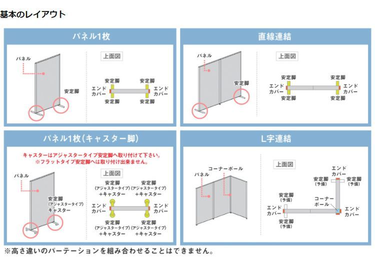 ●L字・十字・T字 コーナーポール(別売)が必要です。 コーナーポールはコーナーごとに1本必要です。