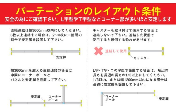 ●L字・十字・T字 コーナーポール(別売)が必要です。 コーナーポールはコーナーごとに1本必要です。