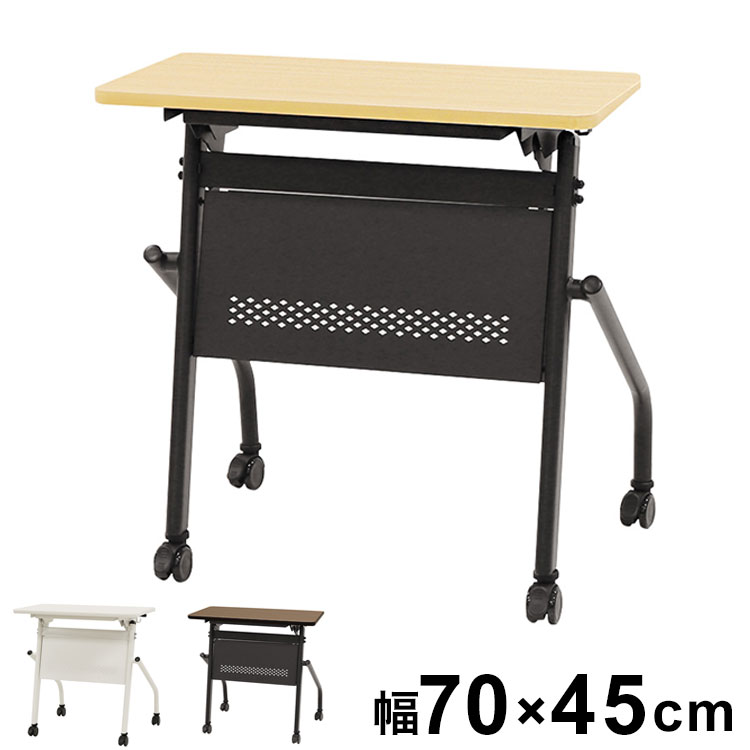 会議用テーブル 幕板付き 幅700×奥行450mm 平行スタッキング ソフトエッジ巻 ワークデスク フォールディングテーブル 作業台 木目 HST-7045M 机 代引不可