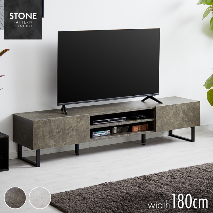 テレビボード ストーン調 幅180cm フラップ扉2杯テレビ台 180 ローボード ロータイプ TVボード TV台 セラミック調 グレー テレビラック AVラック