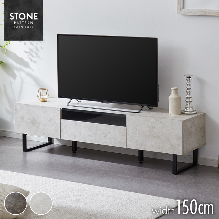 テレビボード ストーン調 幅150cm ガラス窓 フラップ扉2杯テレビ台 150 ローボード ロータイプ TVボード TV台 セラミック調 グレー 引き出し