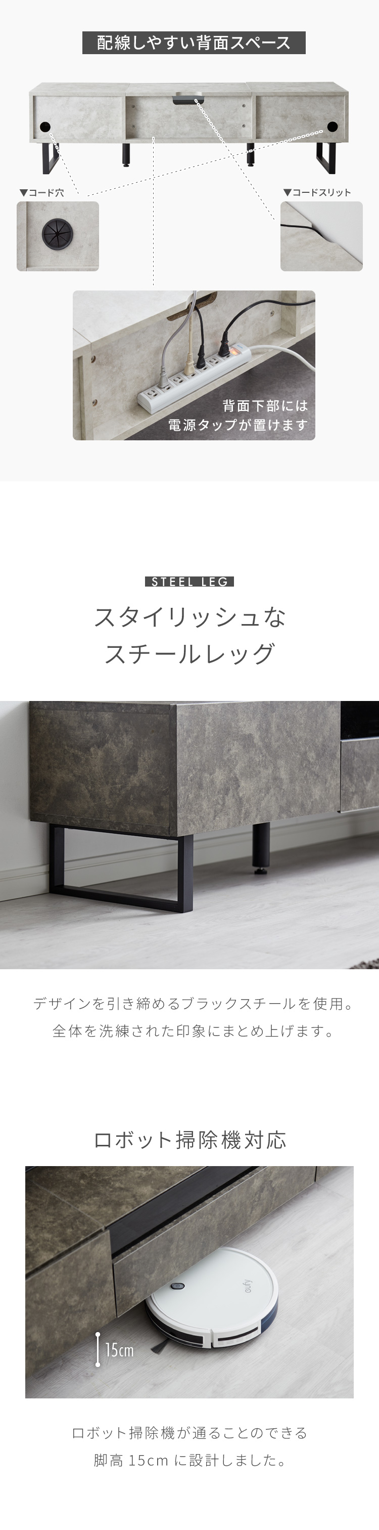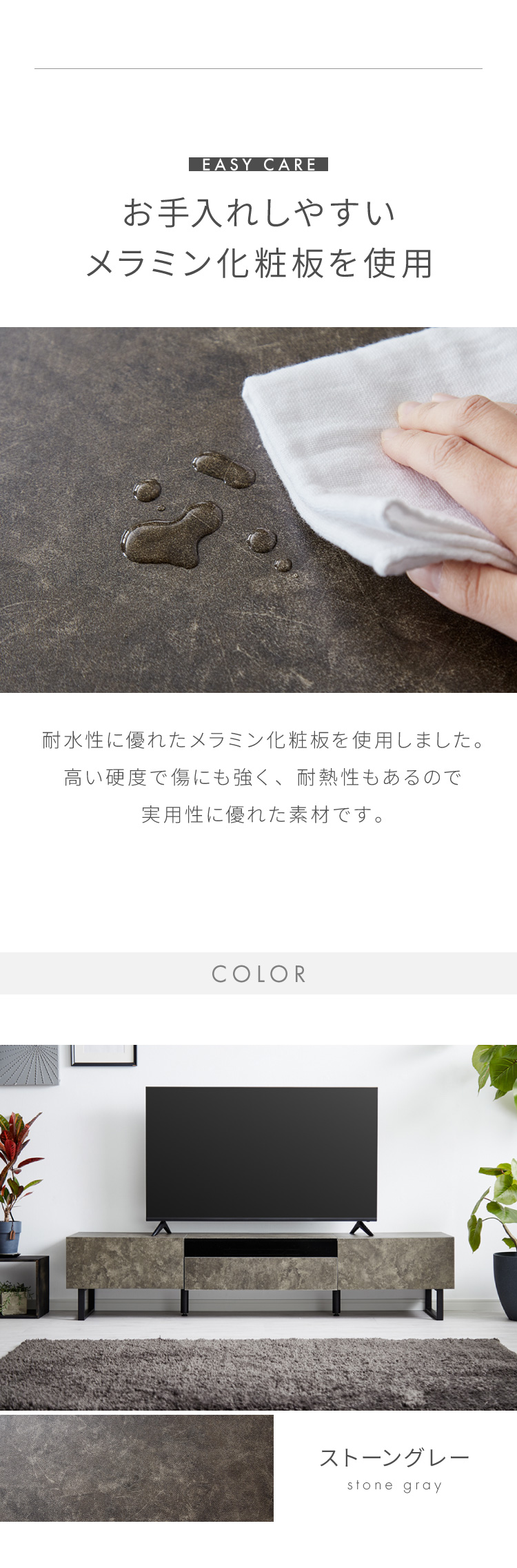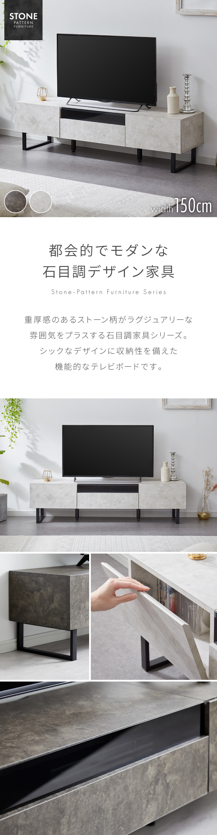 ・石目調の重厚感があり、高級感があるテレビ台です。