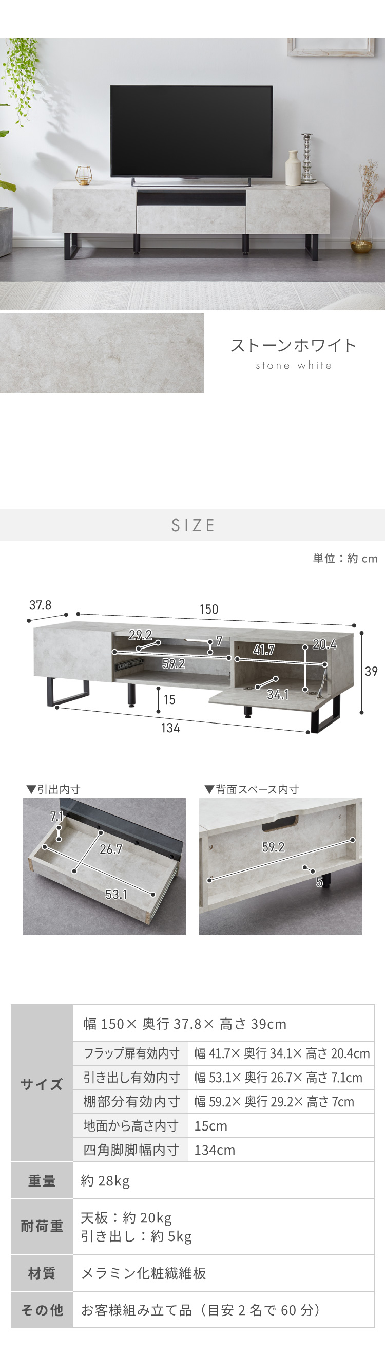 幅150×奥行37.8×高さ39cm