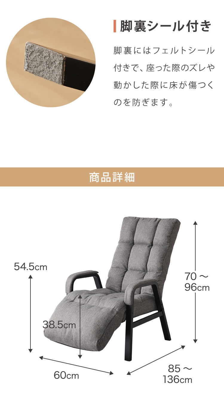オットマン&ヘッドレスト付き ゆったりリクライニングチェア リクライニング8段階 パーソナルチェア ラウンジチェア 高座椅子 肘掛け 肘付き