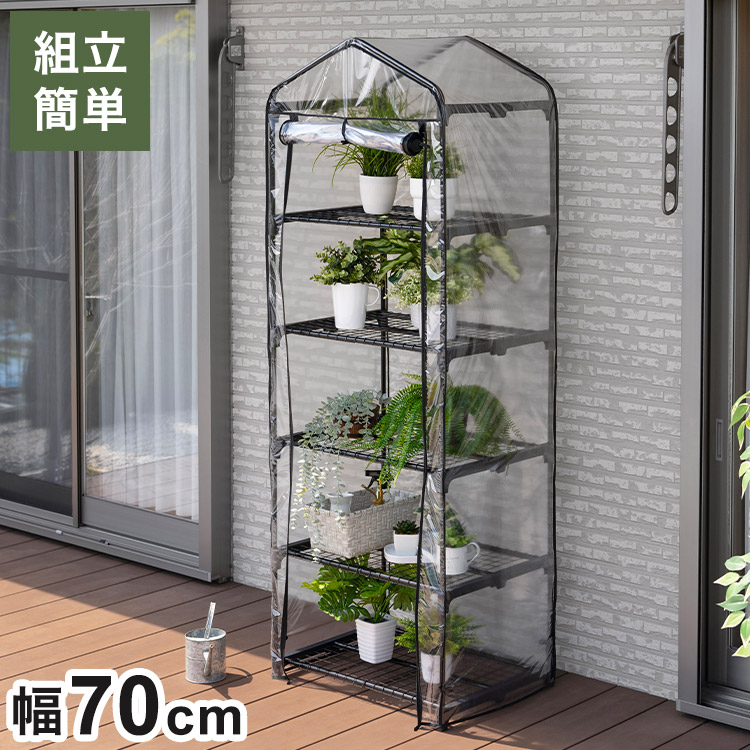 ビニール温室 5段 ブラック 組み立て簡単 工具不要 ビニール温室棚 5段ラック ビニールハウス フラワーラック ガーデンハウス フラワーハウス ラック