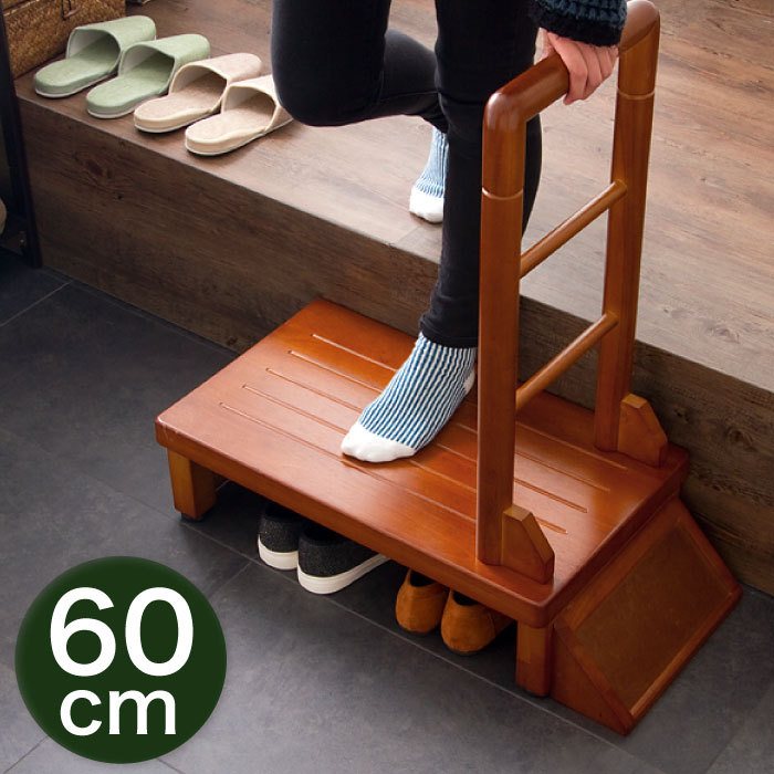 玄関台 手すり付き 幅60cm 手すり ステップ 台 玄関 段差 踏み台 木製 昇降 足場 おしゃれ 立ち上がり 高齢者 収納 昇降補助 介護