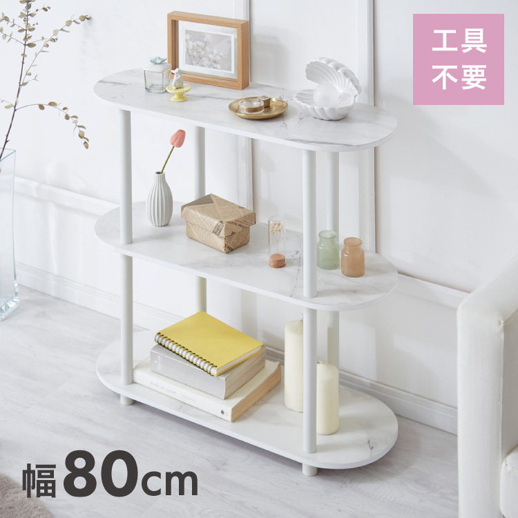 楕円型 オープンラック 組み立て簡単 おしゃれな大理石柄 幅80 3段 ラック システムラック おしゃれ かわいい 韓国インテリア オープンラック 楕円型