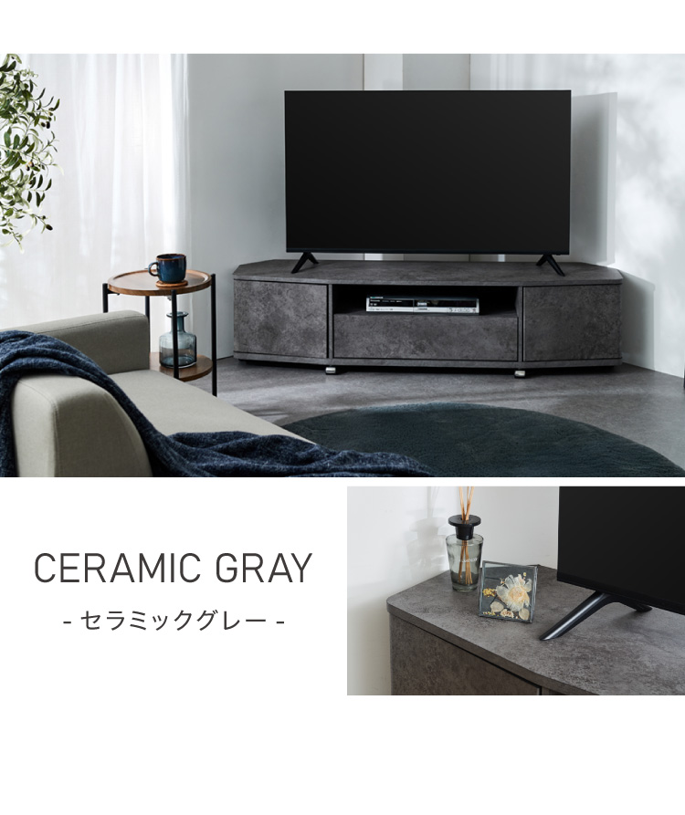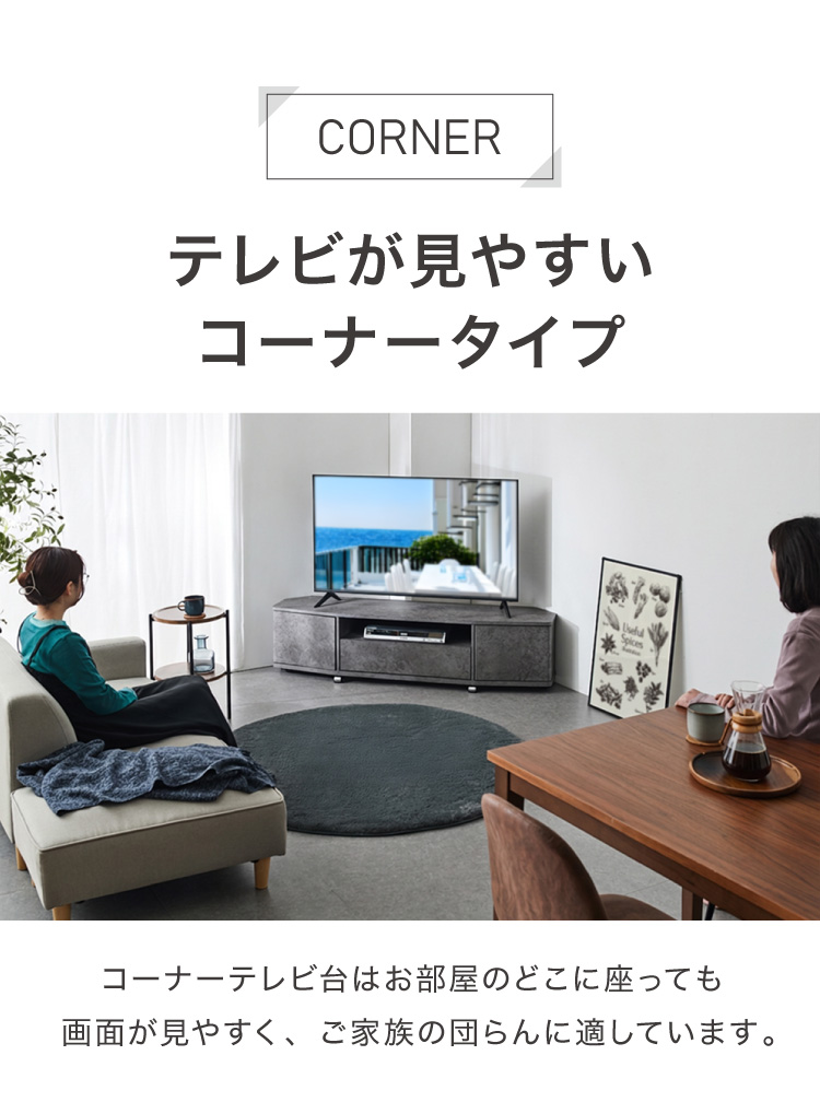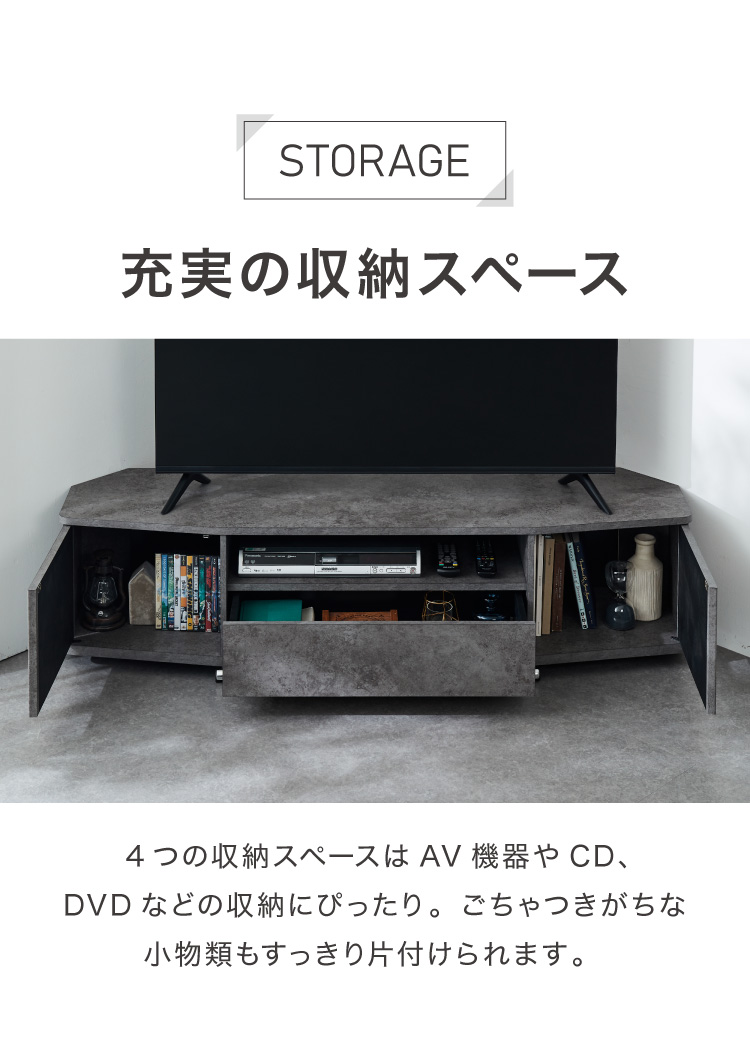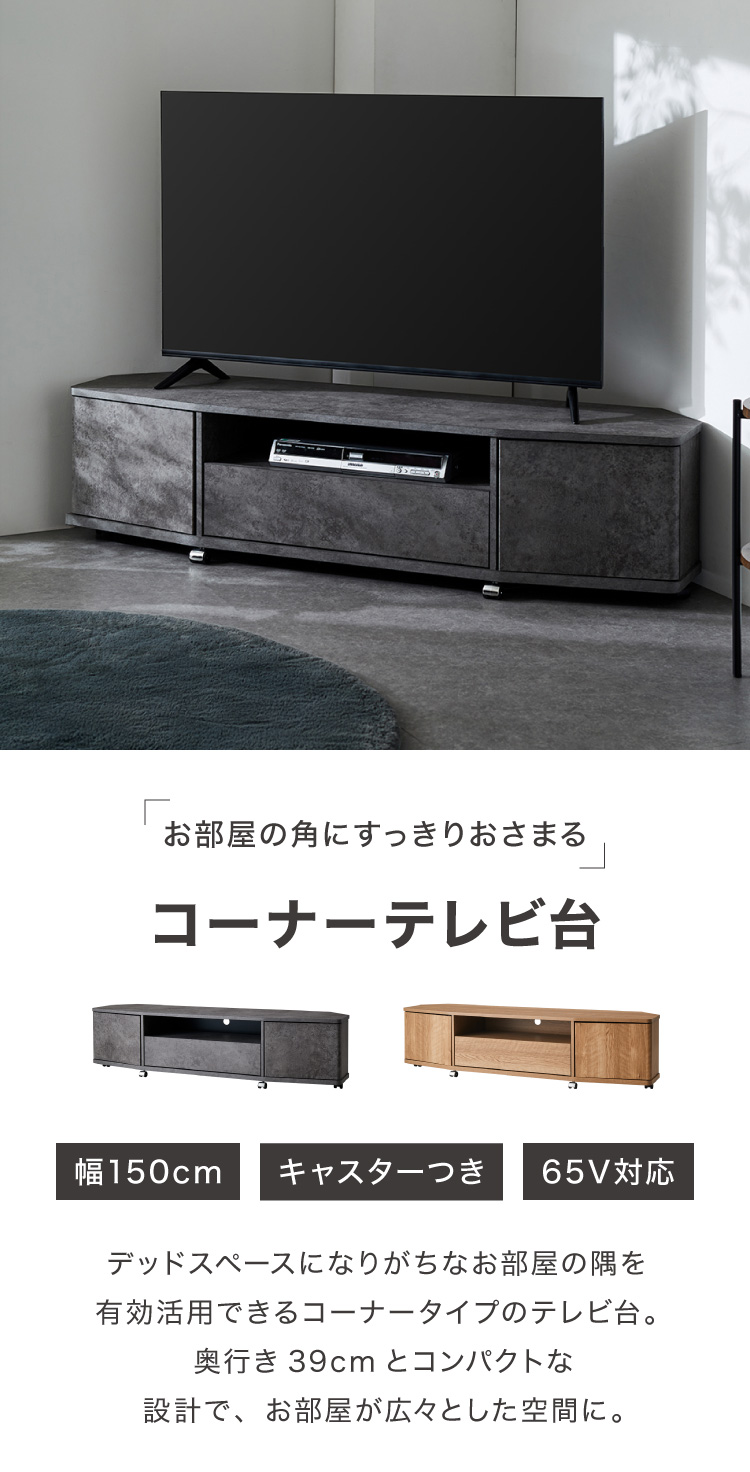 魅せる コーナーテレビ台 150cm 収納 耐荷重40kg 65V対応 ローボード テレビボード テレビラック TV台 TVボード ロータイプ モルタル調 ナチュラル