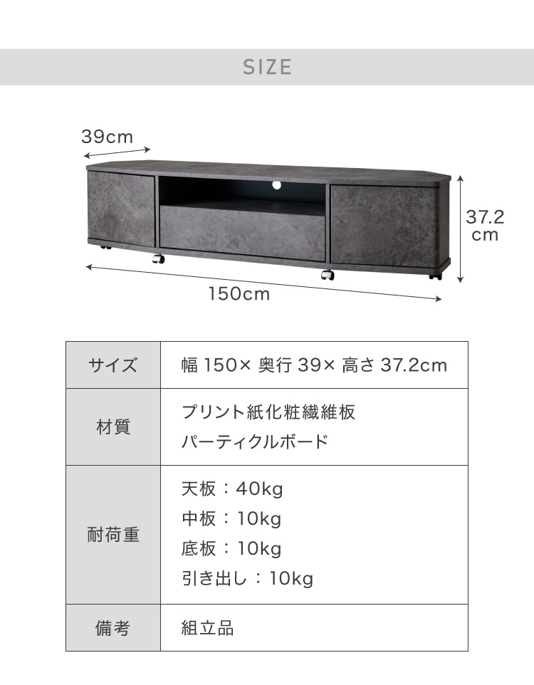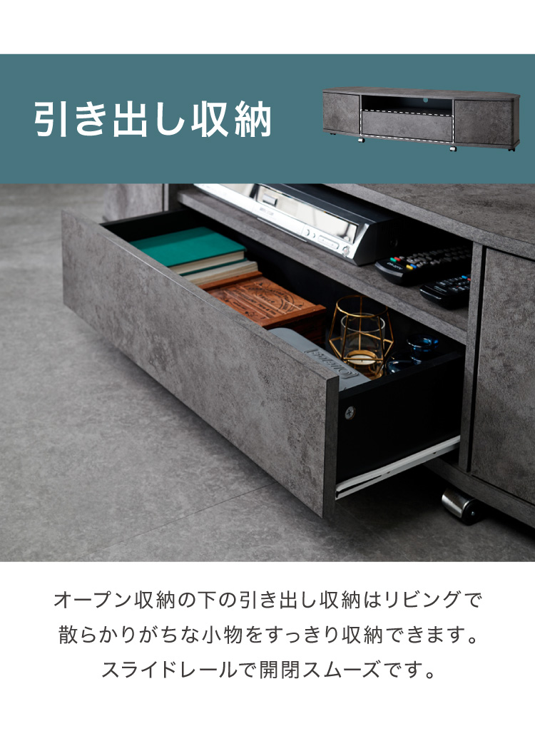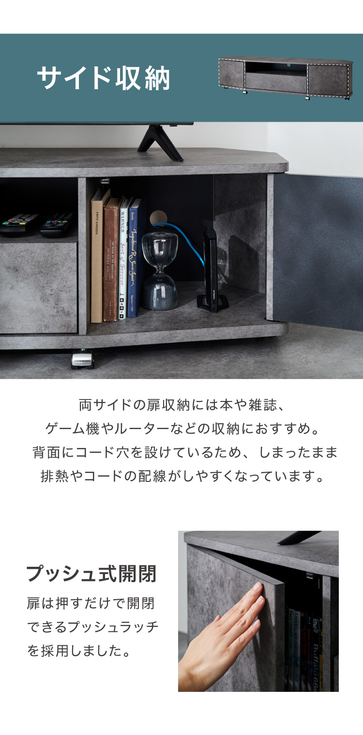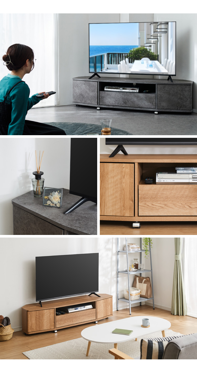 魅せる コーナーテレビ台 150cm 収納 耐荷重40kg 65V対応 ローボード テレビボード テレビラック TV台 TVボード ロータイプ モルタル調 ナチュラル