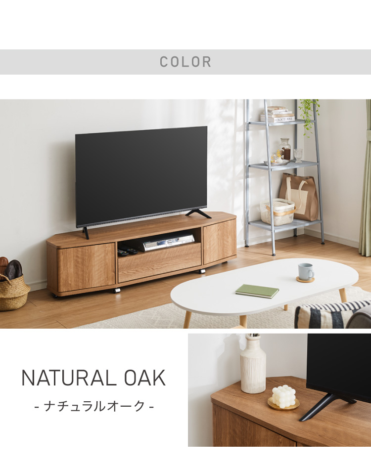 お部屋の角にすっきり収まる、省スペース設計のコーナーテレビ台。