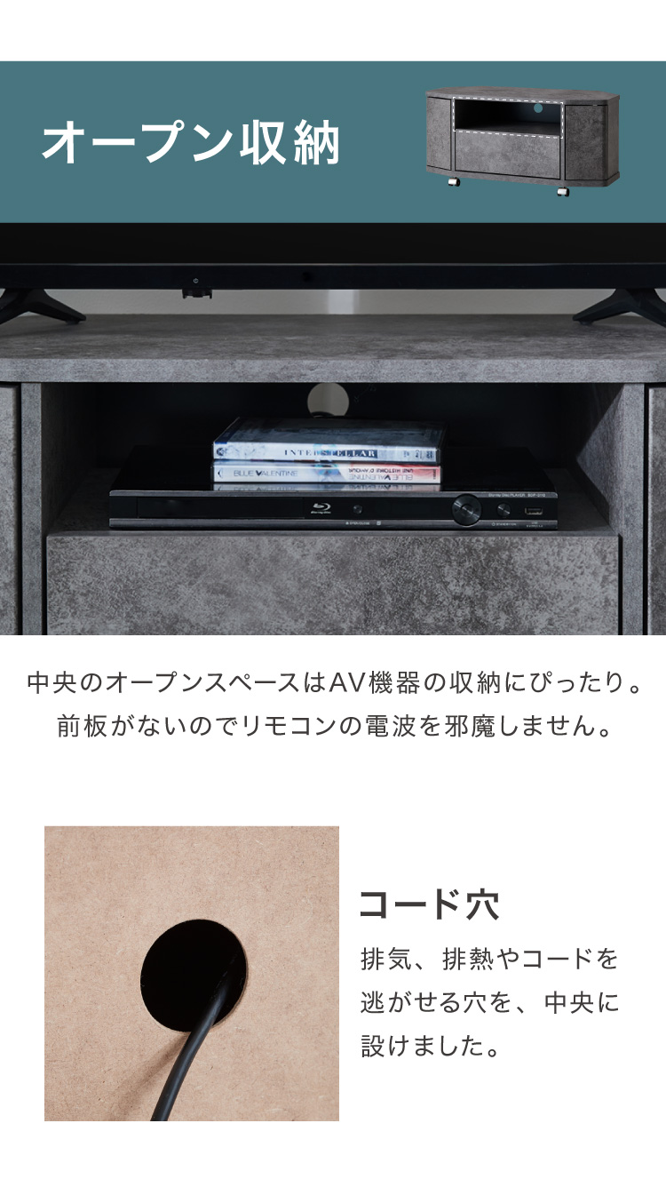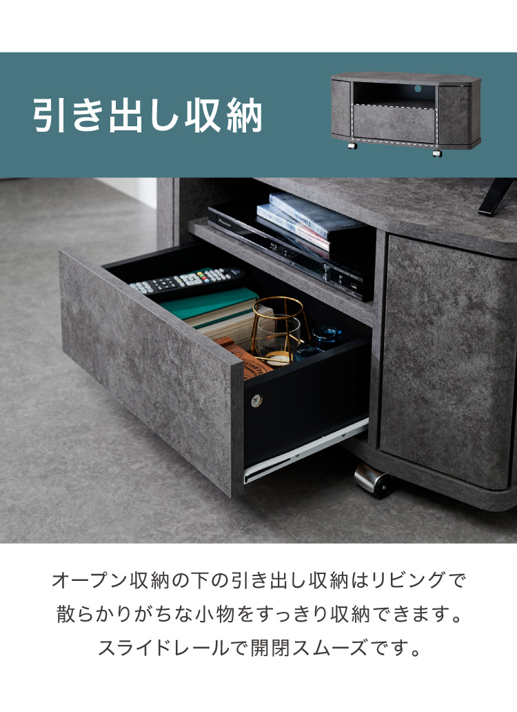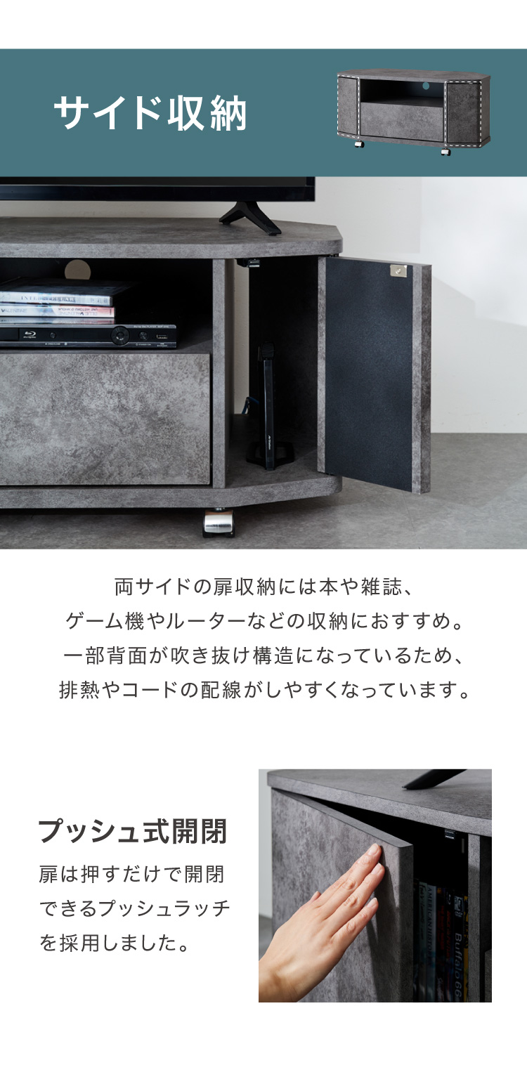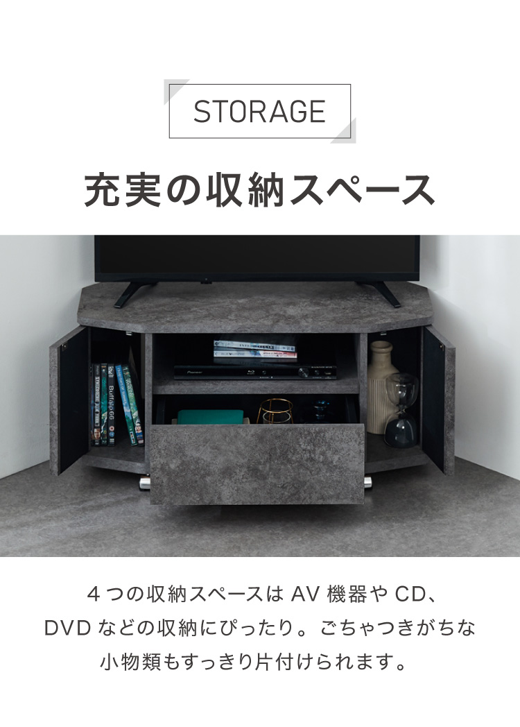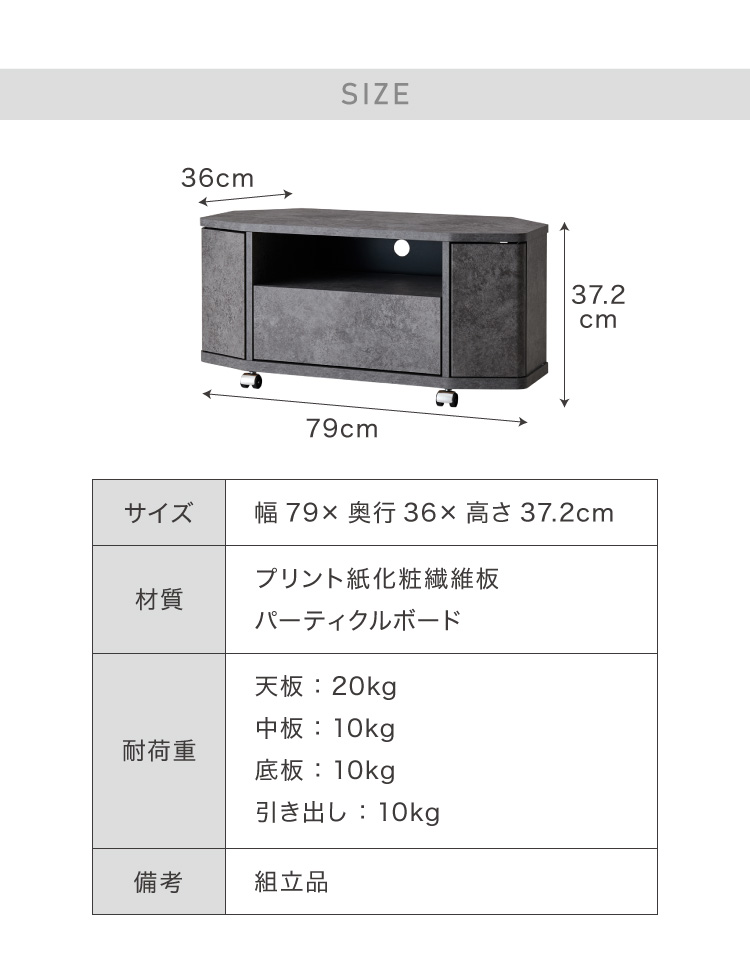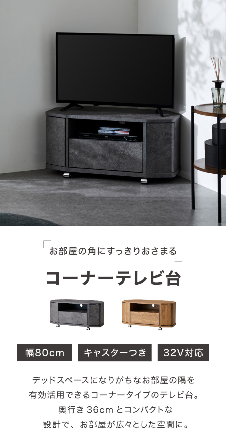 魅せる コーナーテレビ台 79cm 収納 耐荷重40kg 32V対応 ローボード テレビボード テレビラック TV台 TVボード ロータイプ モルタル調 ナチュラル