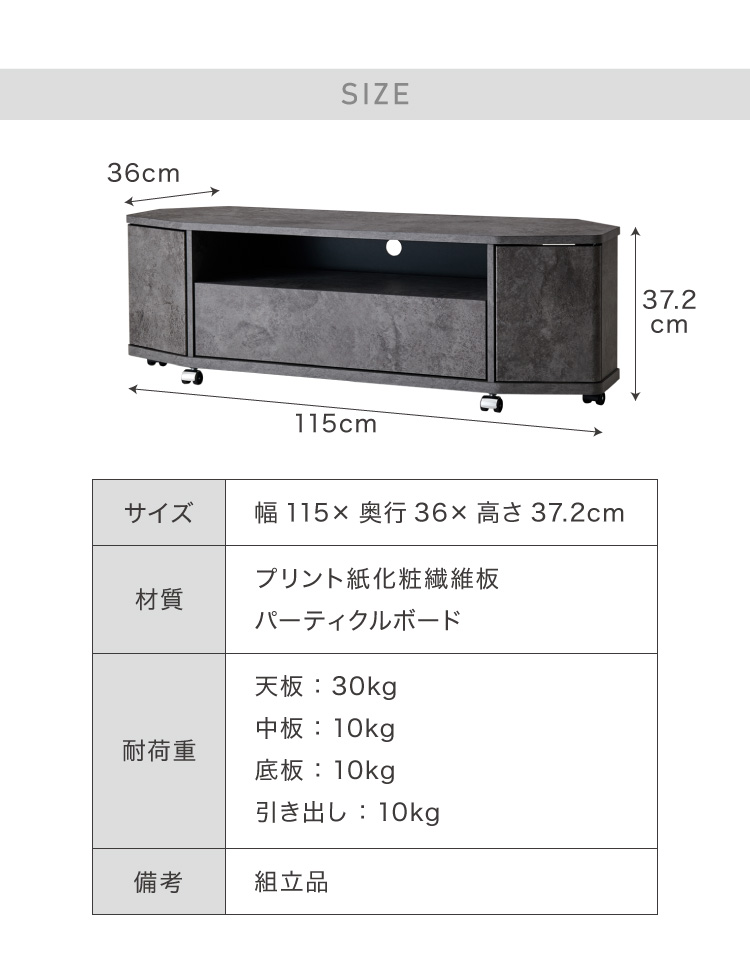 魅せる コーナーテレビ台 115cm 収納 耐荷重40kg 50V対応ローボード テレビボード テレビラック TV台 TVボード ロータイプ モルタル調 ナチュラル