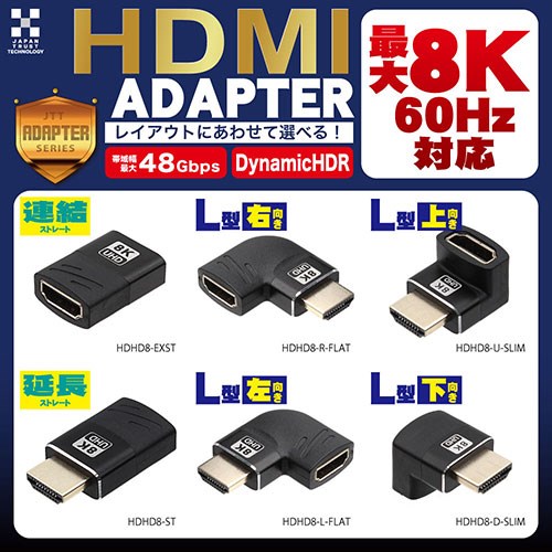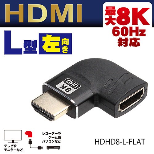 日本トラストテクノロジー HDMI変換コネクタ 直角左 フラット FLAT 最大8K 7680×4320 /60Hz解像度対応 左向きに変換 HDHD8-L-FLAT 代引不可