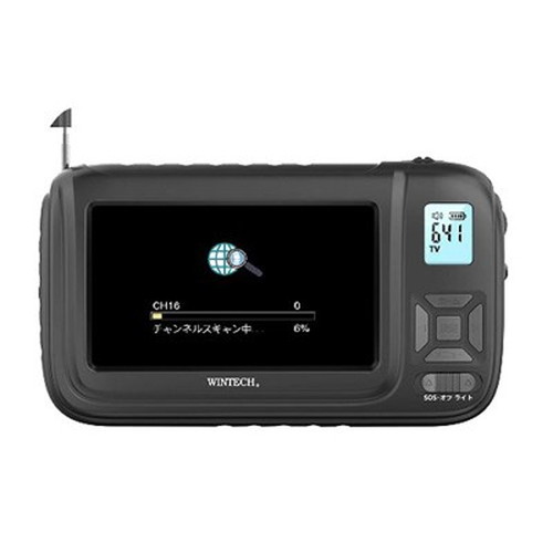 WINTECH AM/FM搭載 手回し充電対応 ポータブルワンセグテレビ ブラック TVR-L38RC 映像関連 代引不可