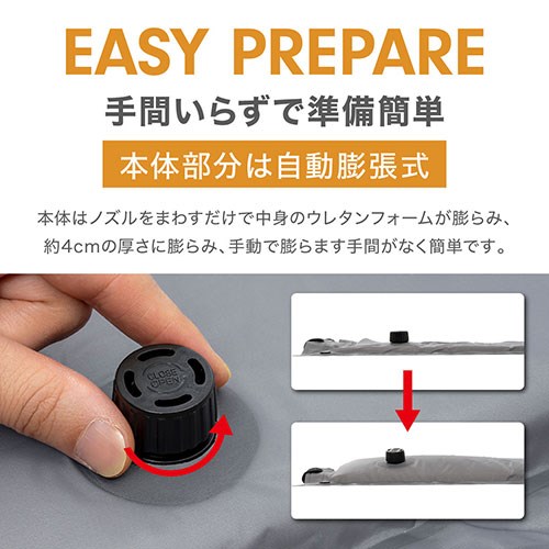 ※ご使用上の注意 : 商品が届きましたら中のウレタンを馴染ませるために、バルブを開き約1〜2日放置してください。工場出荷のままですと、うまく空気が入らない場合がございます。その場合は膨らませたり、畳んだりを2〜3回繰り返すとスムーズに空気が入るようになります。